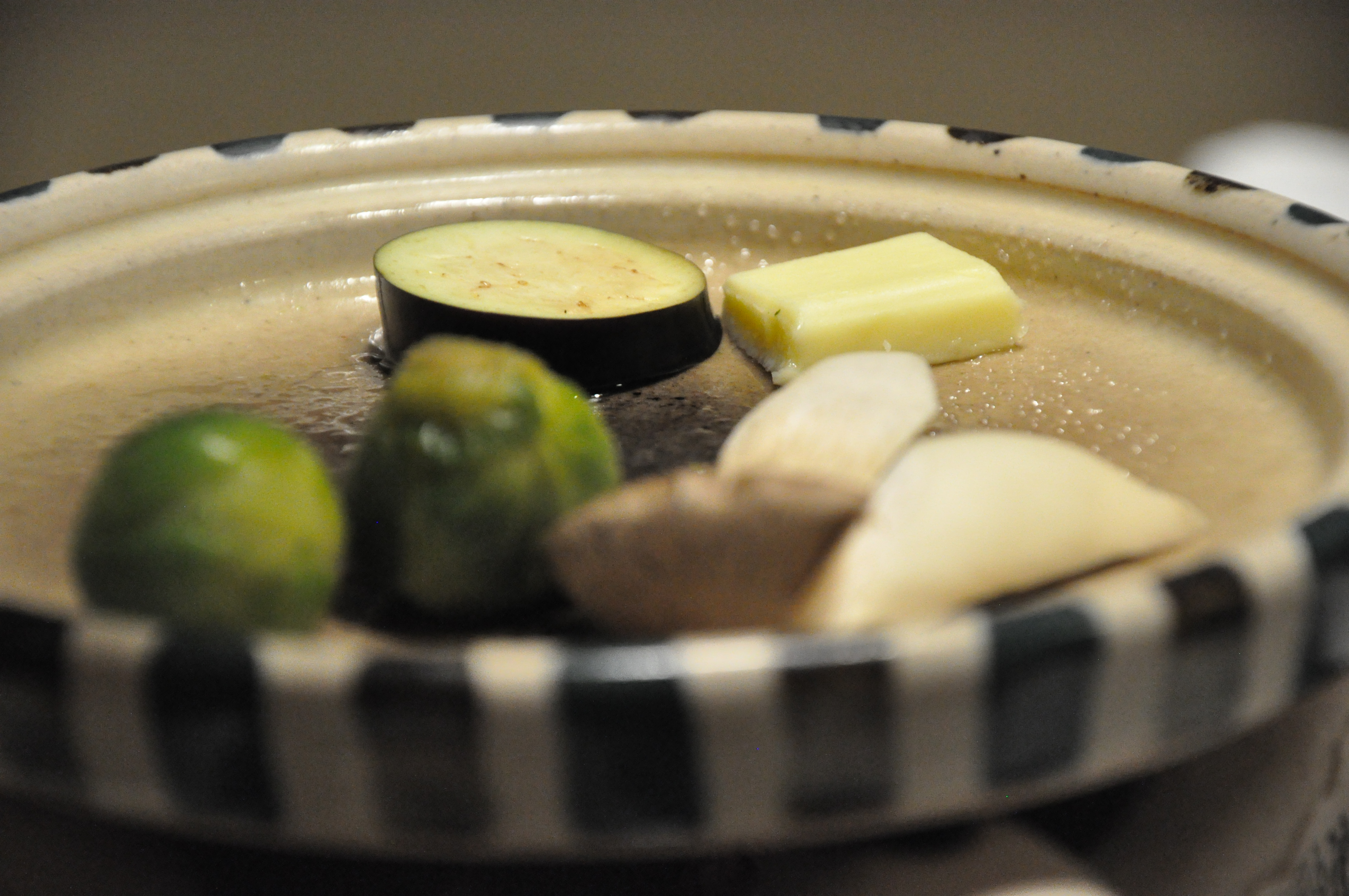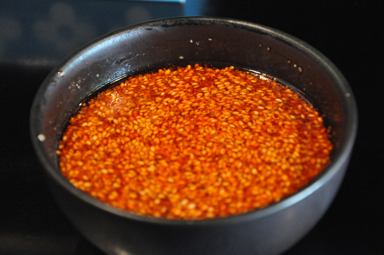 We drag our bags over and the proprietors move mountains so we can be seated and our cumbersome luggage accommodated. I try to sit down on the tables which appear lower than normal western standards and struggle to fit my thigh between the top of the chair seat and the underside of the table top. A nod of acknowledgement from Ben from the other side of the table that he is having the same issue puts a smile on my faces and I make myself as comfortable as possible. The owner brings over a menu of which there appears to be 2 options, regular or large. Ben orders us 2 large and they proceed to bring over the standard, hot flannel, tea and little dishes of pickled vegetables.