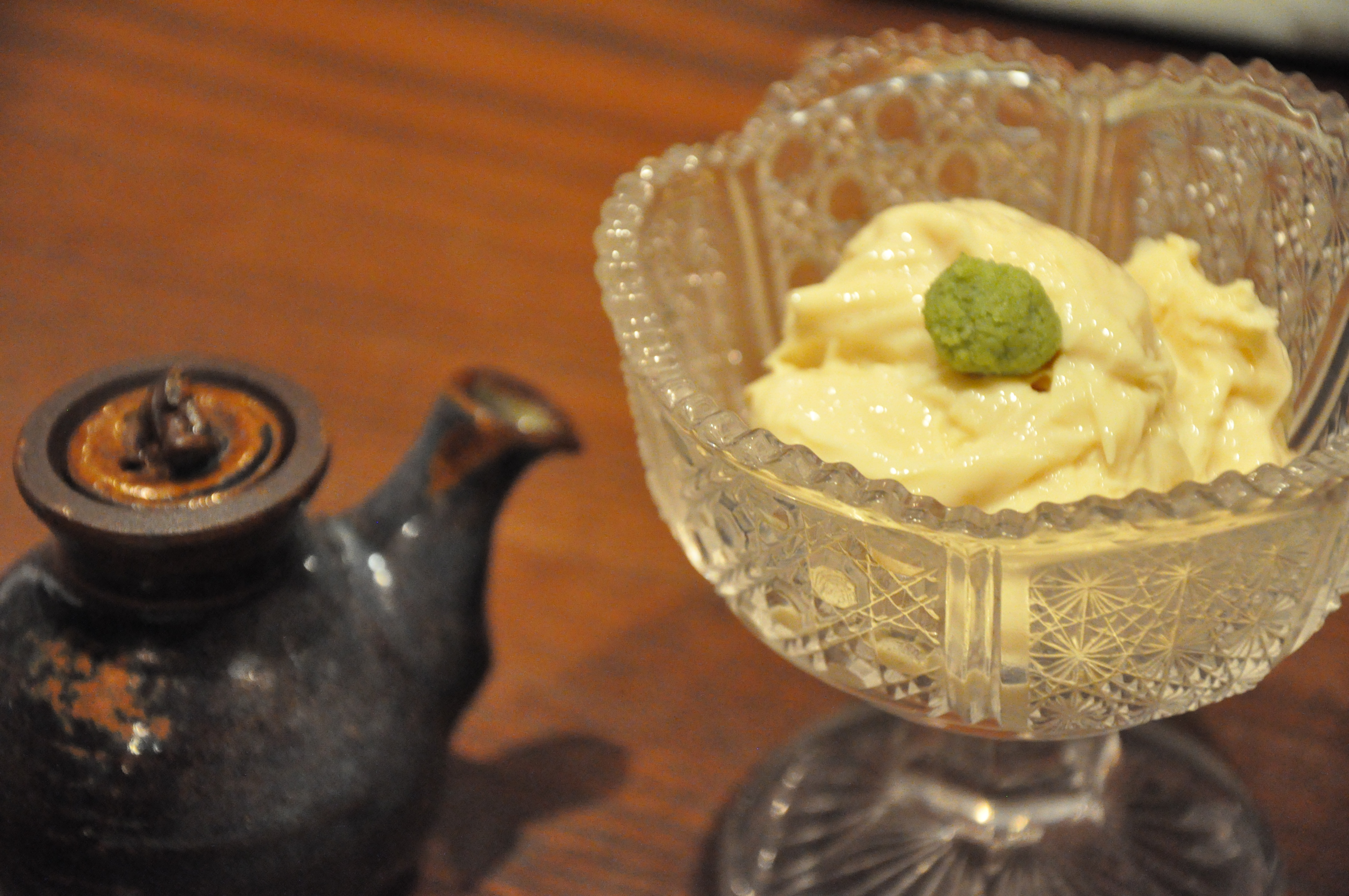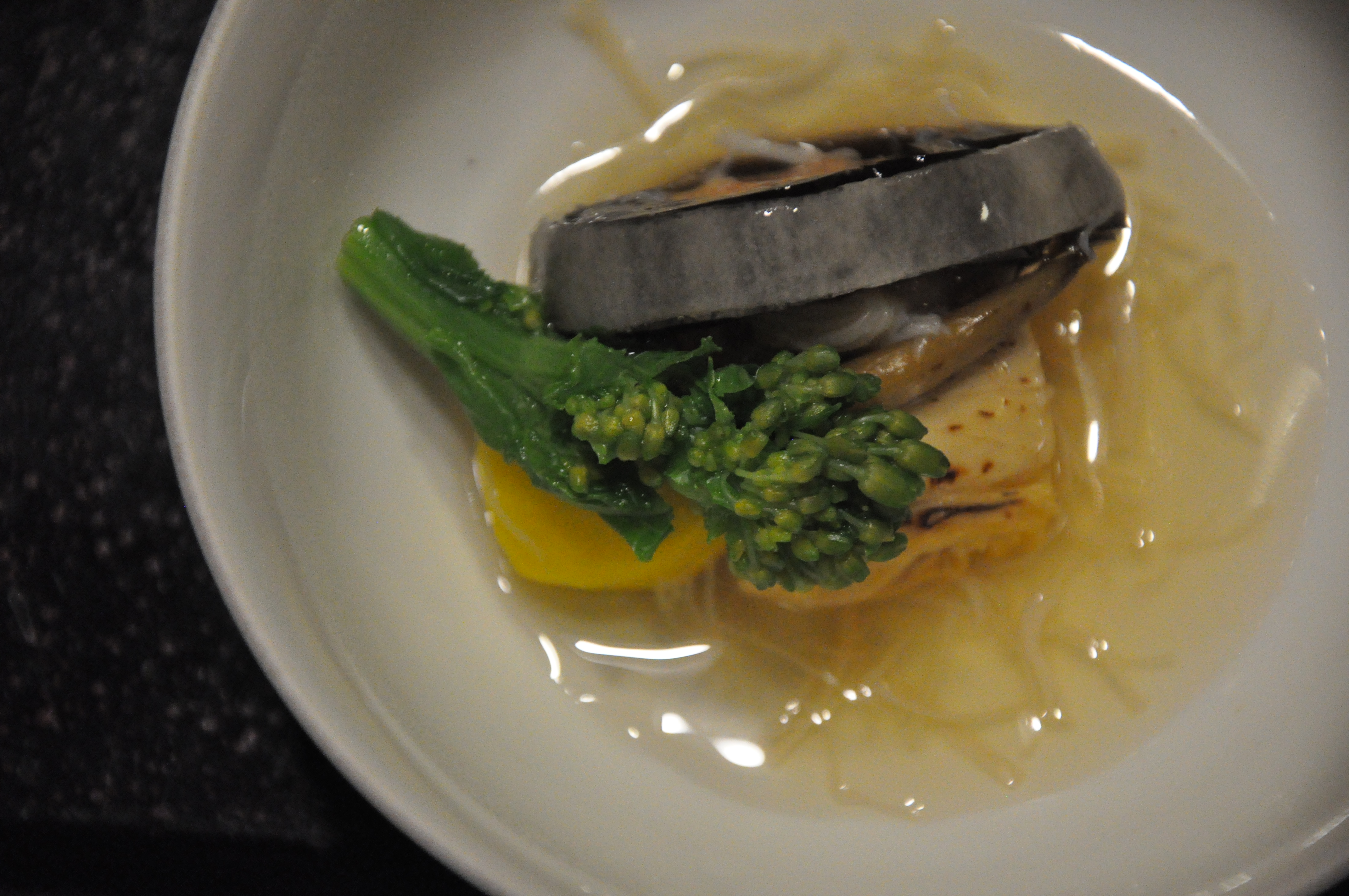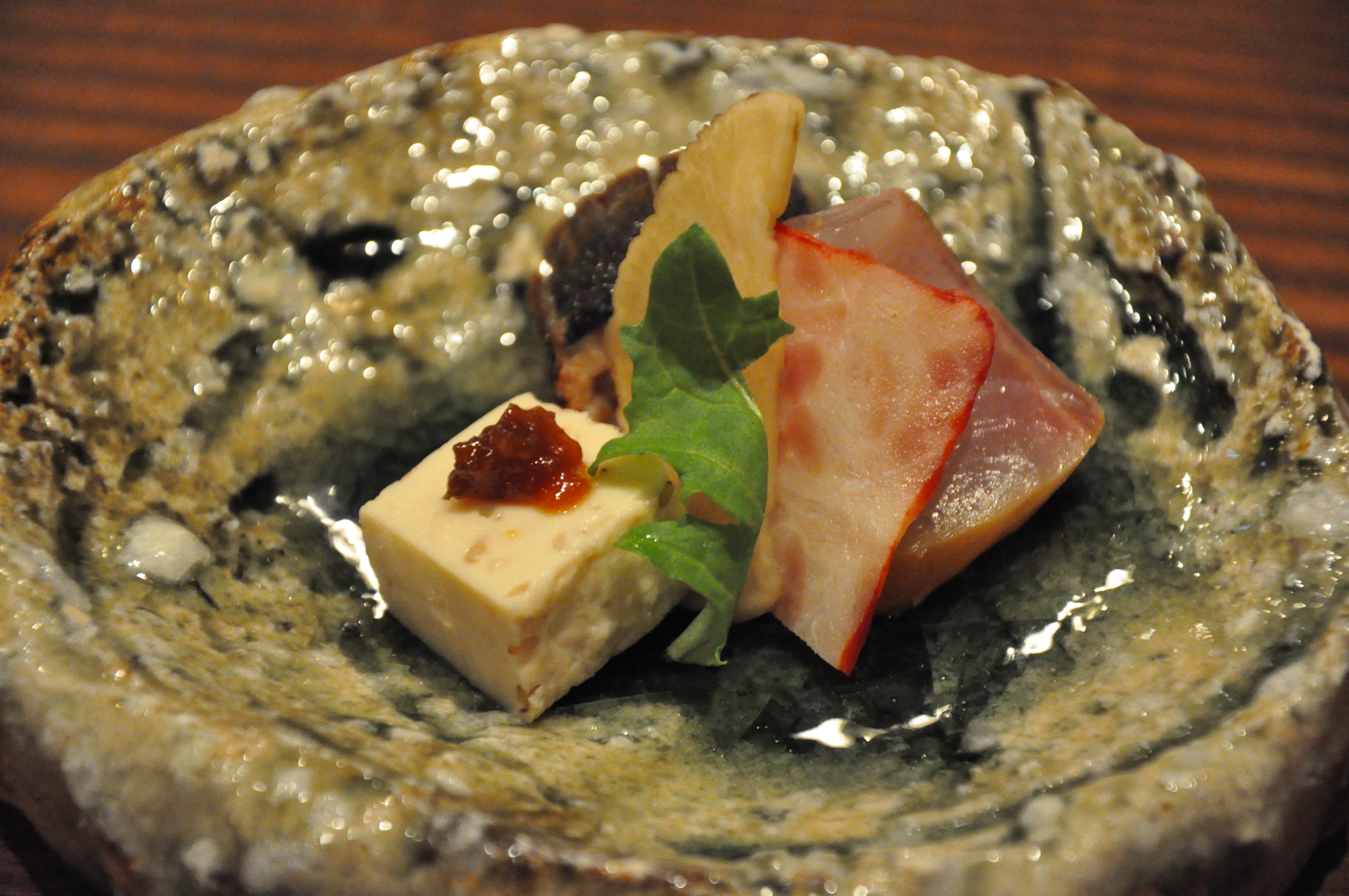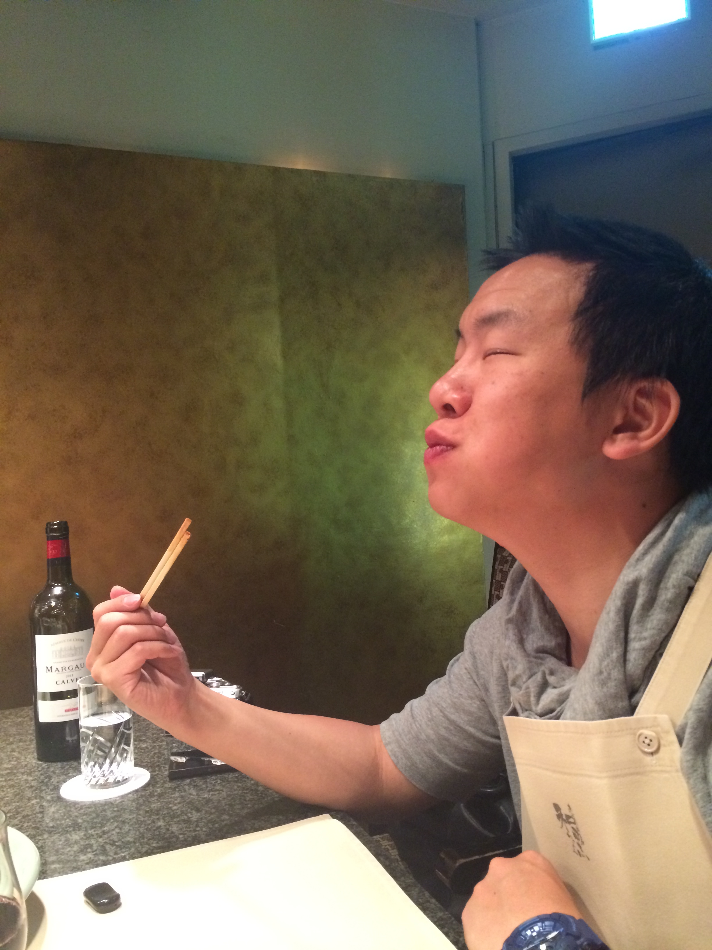 One dish I wasn’t so sure about when it was ordered was the cheese tofu. Then out came gelatinous off white coloured dish topped with what looked like a soy sauce and flaked garlic with a side of sliced baguette. After seeing my friends dive into it like it was going out of fashion quick i followed suit and what a surprise. It had the wonderful silky smooth texture of tofu for sure, but tasted like creme caramel with an ever such slight hint of cheese. The soy was in fact a caramel sauce and the garlic was in fact sliced almonds. More of a dessert than a main, but delightful nevertheless. By the time I realised what I was enjoying I looked to see the plate empty and my friends looking in various directions as if it had nothing to do with them. The soup gyoza was warm and comforting. Still prefer the fried ones though The avocado chicken and parmesan was nice rich and salty hit The anchovy potato was the closes thing I’ve had to 1. roast potatoes and 2 proper bacon. Not too heavy on the anchovy paste but a good dollop’s worth to coat a side or two Spinich, mushroom and onsen tomago (half boiled egg) salad was a yummy irony hit. Every salad should have an onsen tomago! Sake here was pretty tasty. No idea which one it was though.