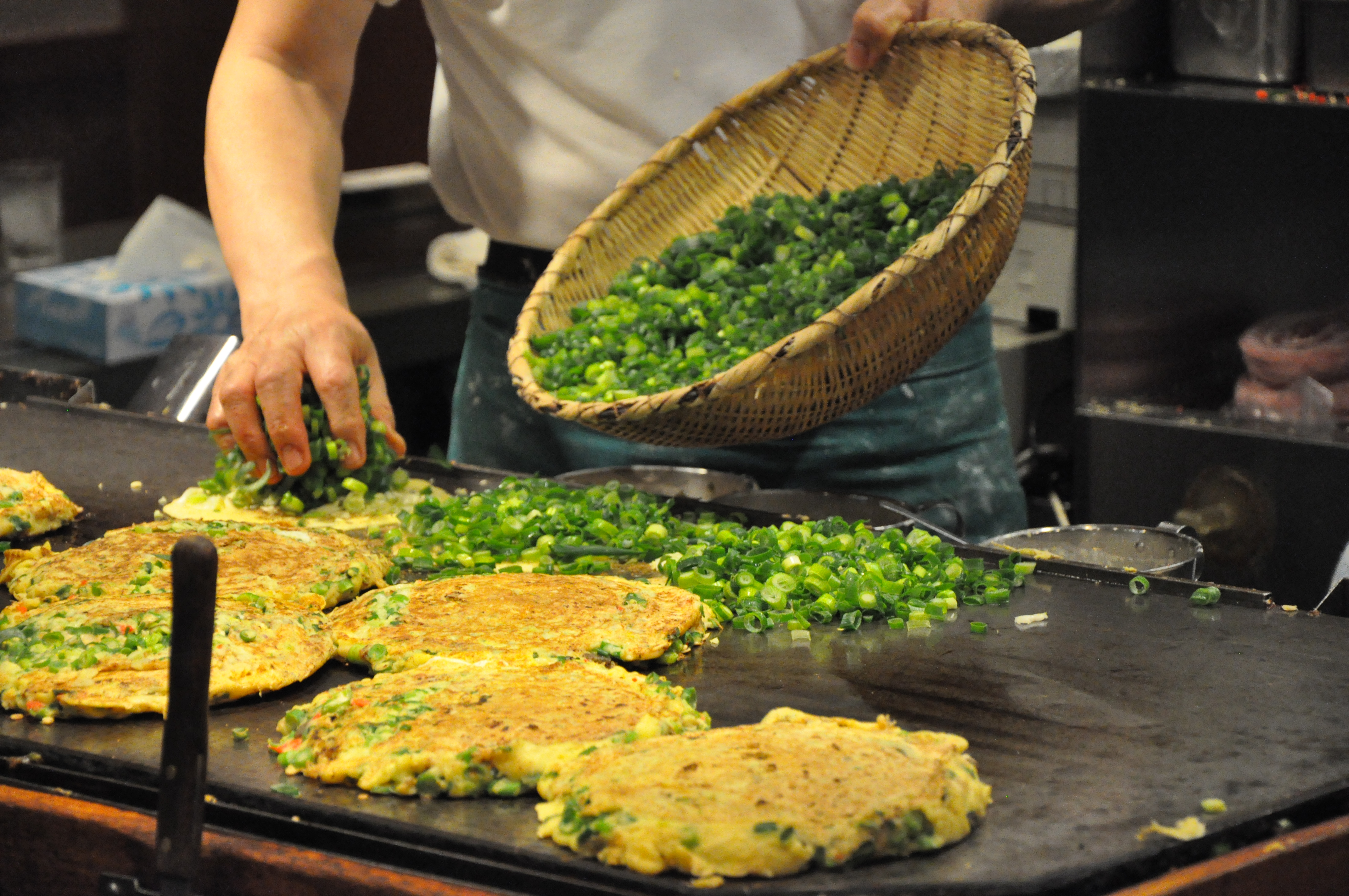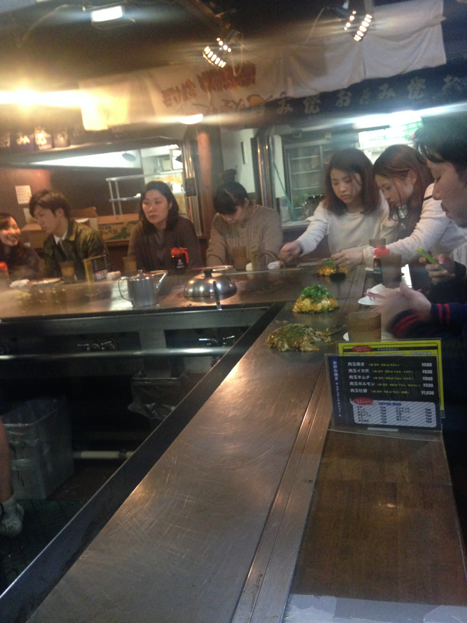 A friend had recommended a place to go and try the local variation of Okonomiyaki. As per usual there was a queue and the queue was made up of local salary men and other Japanese tourists.
